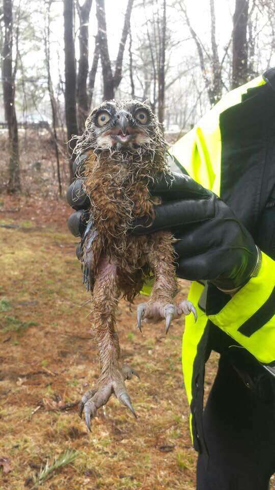 Considering the owl was wet and freezing, and susceptible to being attacked by a predator where he was, MacElhiney decided to carry him to safety.